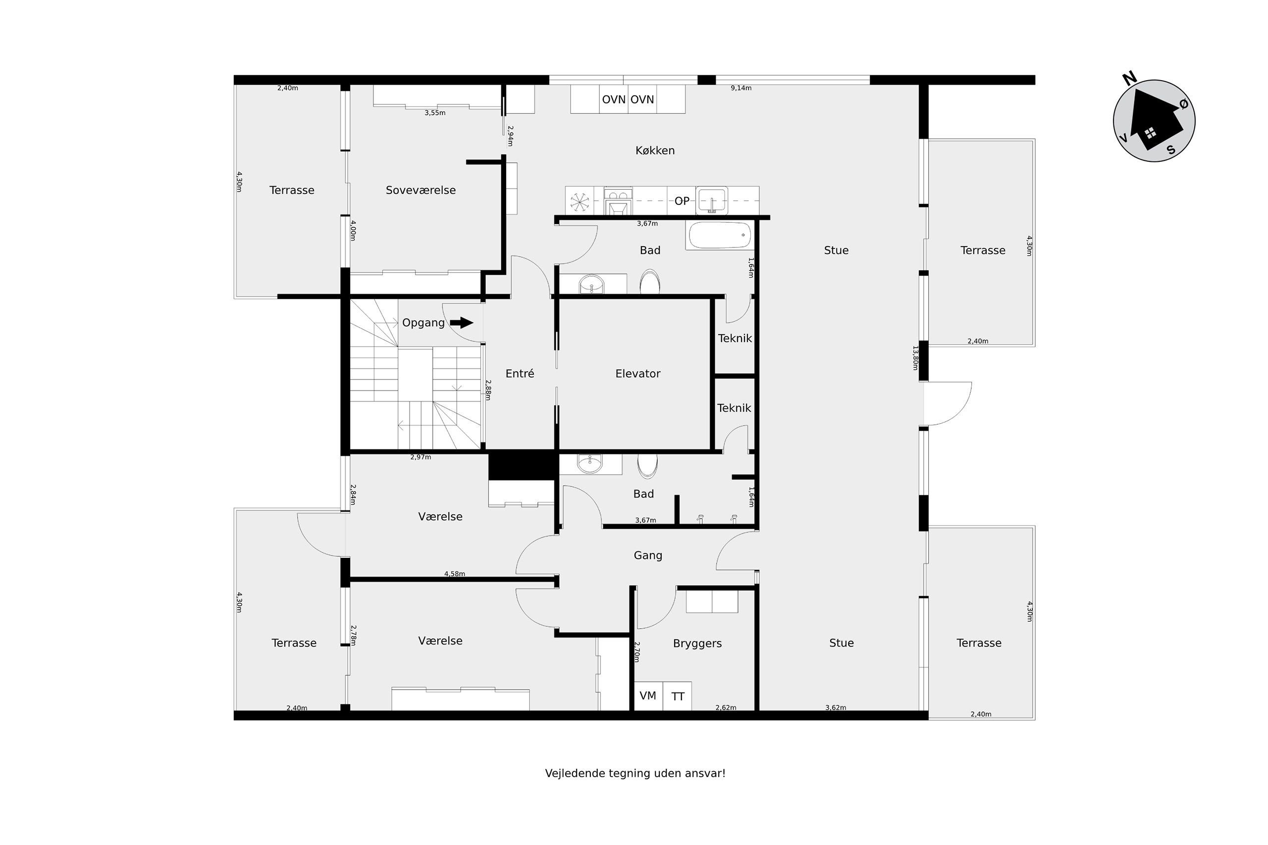 - Plantegning med mål